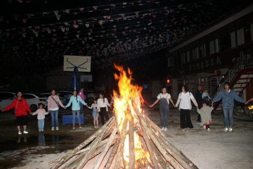 之后,大家去了牛頭寺,牛頭寺,原名任頭山。據傳,唐代有一農家耕牛失圈,連日來四處尋覓無蹤無影,后來在懸崖絕壁的任頭山頂峰找見這頭母牛,并產一牛犢,被人們傳為神牛。于是便在這峰頂之上建起由前殿、后殿、中殿、叁門、伙房組成的寺廟,更名為牛頭寺。牛頭寺歷千載歲月,經百代滄桑,幾多崢嶸,幾多輝煌。參觀完牛頭寺,大家去了大草坡農家樂,劉愛芳董事長給大家安排了豐盛的晚餐以及篝火晚會,篝火晚會不僅讓大家放松心情,緩解壓力還可以將大家的熱情推至最高點,在篝火氛圍的渲染下,大家唱歌跳舞,放松身心,高興極了。增進了大家的感情。